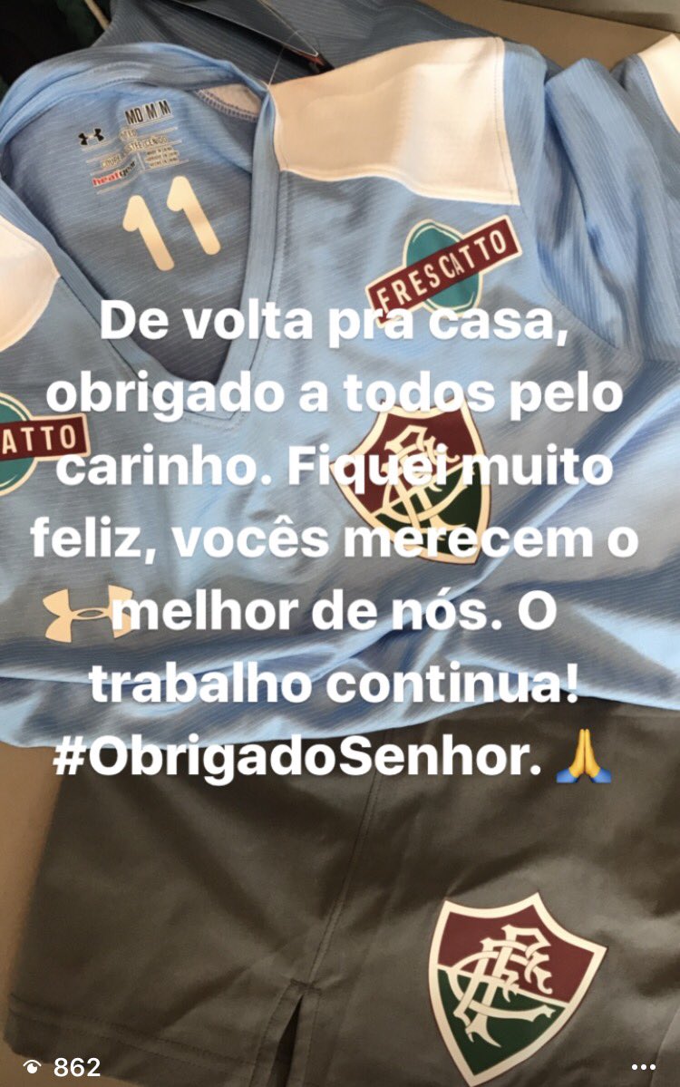 Em publicação no Instagram, Wellington Silva celebrou o retorno ao Fluminense após o fracasso na transferência para o Bordeaux (FRA). O atacante agradeceu todo o carinho recebido nos últimos dias e na postagem, exibiu a camisa de treino do Fluzão com seu número (11) às costas.